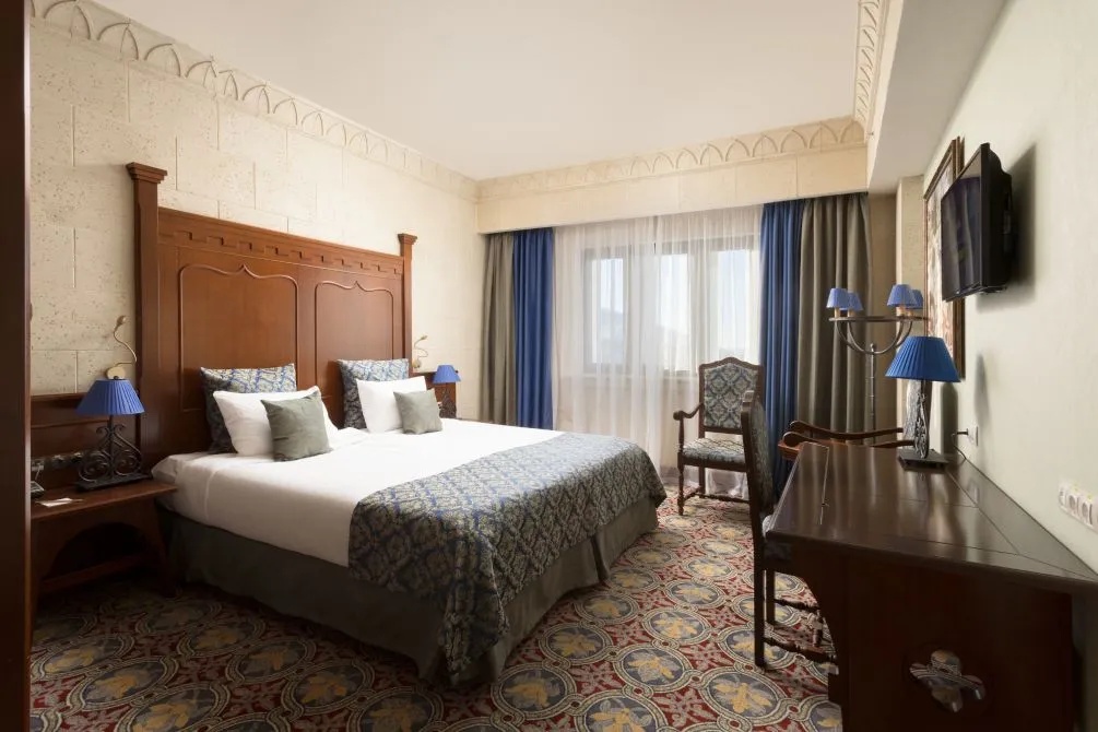 Отель-замок «Богатырь» — это яркая сказочная атмосфера, сочетающаяся с комфортом и сервисом уровня 4★. В стоимость проживания включено бесплатное посещение Сочи Парка.